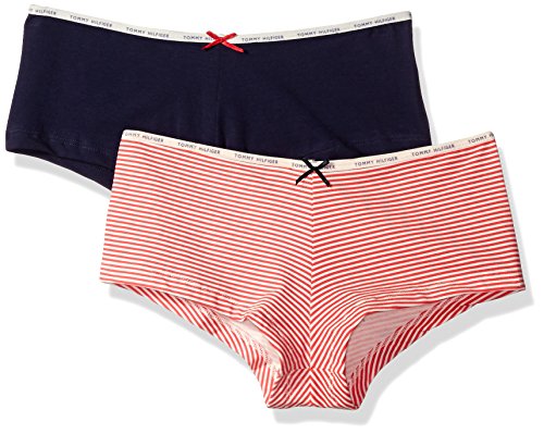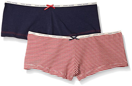 Tommy Hilfiger Women's 2 Pk Classic Logo Boyshort, Tango Red Feeder/Peacoat, Large