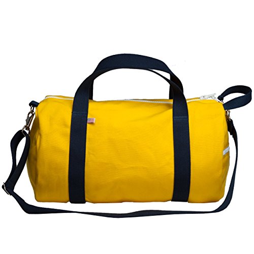 Product Description The Oahu Weekender Duffel consists of heavy-duty, sunshine yellow 18 oz canvas and navy blue cotton handles. No detail was overlooked, as each bag features a unique Hawaiian sky blue gingham plaid liner and contrast stitching. The weekend duffel is the perfect size for a 2-4 day trip, with multiple pockets to keep smaller items within reach. 0