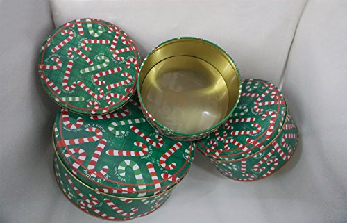 Christmas themed round storage tins, shabby chic, green color with candy canes design all over the tins, set of 3
