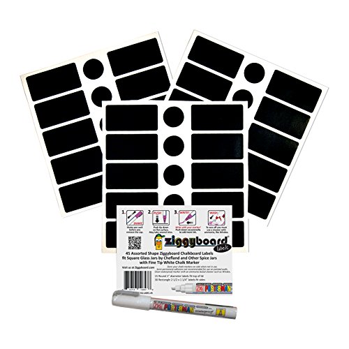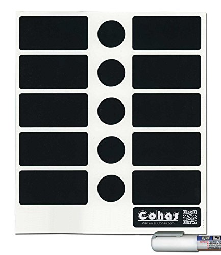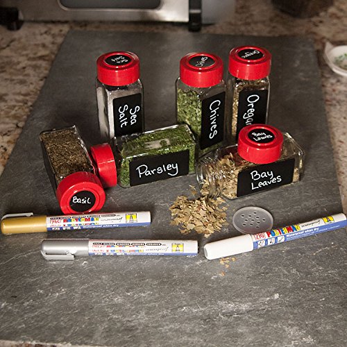 Cohas Chalkboard Labels for ChefLand Square Glass Spice Jars includes Liquid Chalk Marker and 45 Labels, Fine Tip, White Marker