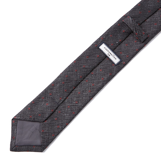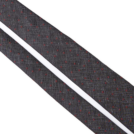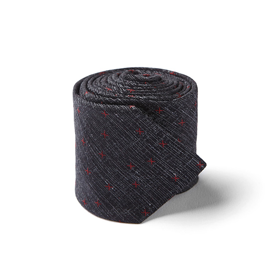 - 조직감 바탕에 스티치 크로스 자수로 포인트를 준 남성 넥타이.