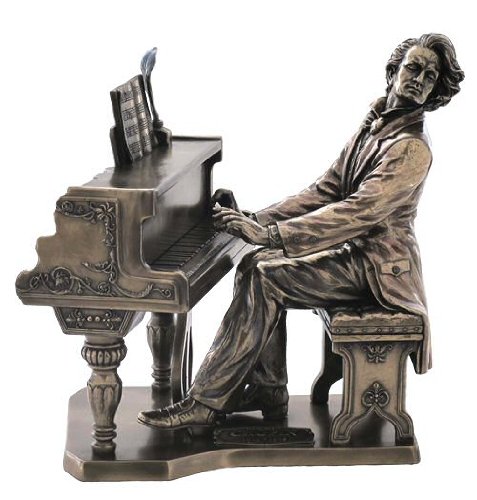 POLISH MUSIC COMPOSER FREDERIC CHOPIN PLAYING PIANO 8 3/4 INCH COLD CAST BRONZE FIGURINE STATUE