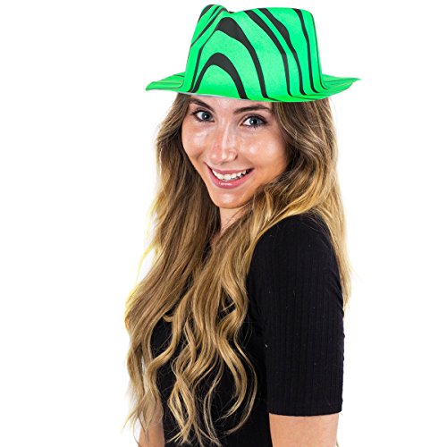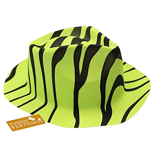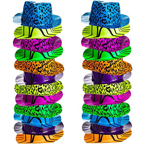 Neon Party Hats - 24 Pack Plastic Gangster Hats with Animal Print by Funny Party Hats