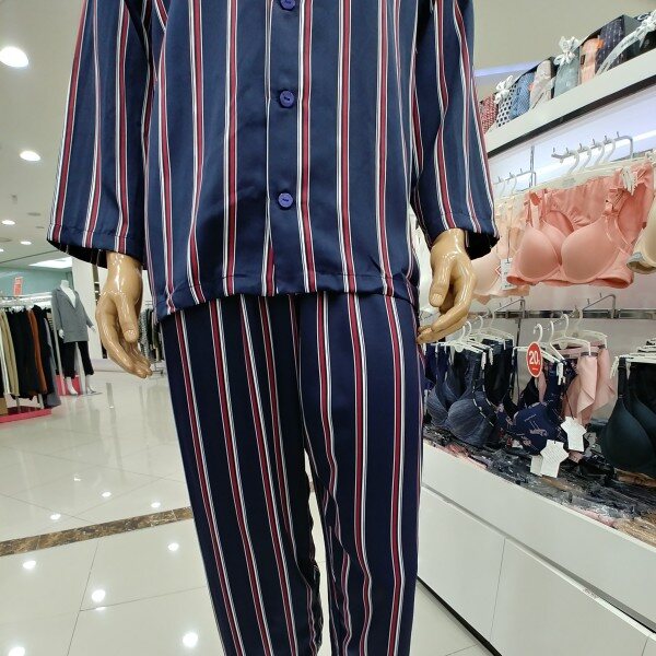 가볍고 매끄러운 광택있는 소재로실키한 느낌의 남성 9부 잠옷