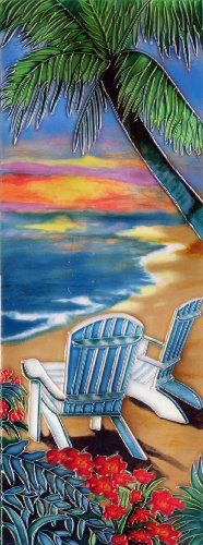 Continental Art Center KD-051 6 by 16-Inch Palm with Chairs on a Beach Ceramic Art Tile