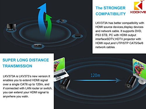 SUPER LONG DISTANCE TRANSMISSION--It enables you to extend HDMI signal over a single CAT6 up to 120m/390ft, and if connected with LAN router or switch, you can extend your HDMI signal to anywhere you want.