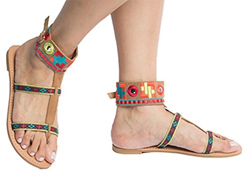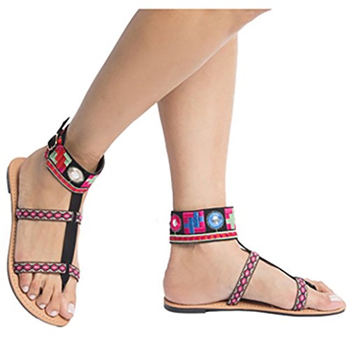 Product DescriptionSandal-multi-colored fabric ankle strap flat sandal0