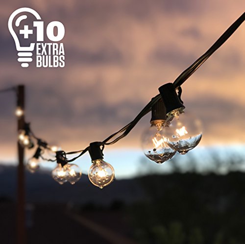 10 EXTRA G40 GLOBE BULBS: Even with a premium set like ours, a bulb may occasionally burn out. That's why we include 10 spare G40 bulbs for added value & easy replacement. 60 G40 clear glass bulbs in all. Each bulb is slightly smaller than a golf ball and uses only 5 watts of power. Plus, if one bulb goes out, the rest stay lit, so you won't have to replace the whole light string