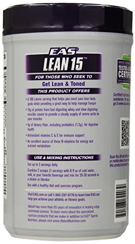 With 100 calories and 4 grams of sugars per serving, EAS Lean 15 is specifically designed for active people. And because it's packed with 15 grams of protein and essential vitamins and minerals, this protein powder is a great way to help manage hunger while supporting good overall nutrition.