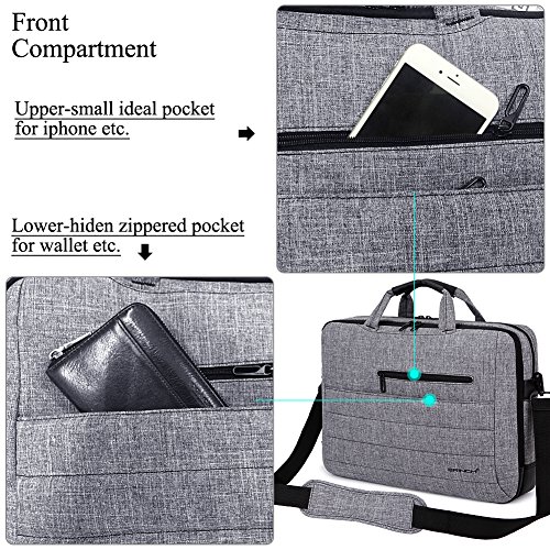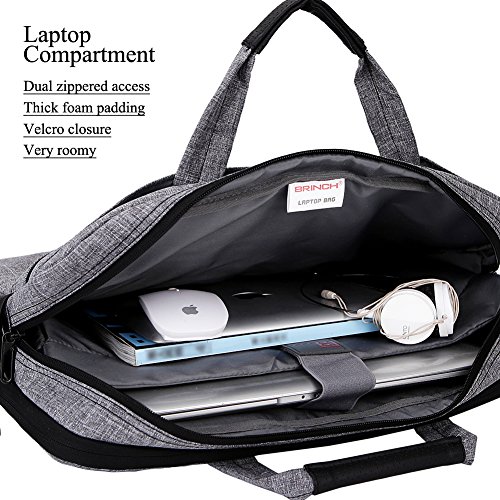 Why should take this bag ? This Brinch laptop bag offers a simple and yet fashionable way to protect your Laptop / Notebook / MacBook / Ultrabook / Chromebook/ iPad / Tablet Computers while you are on the go. Built for Protection The safety of your laptop or iPad is our primary concern. A velcro foam padded laptop bag with compartment walls featuring soft polyester material that provide extra protection, that effectively absorbs accidental bumps, reduces damages caused by impacts, and protects your computer from scratches. In middle compartment,a non-zippered foam pocket is specially design for ipad or tablet computers. Designed for Convenience The front has two ideal zippered pockets for items such as phone,book etc. Zippered front compartment has big room and various pockets for other items,such as pens etc. A velcro big pocket on the back for bigger items Back belt is easy to fix to the trolley of trolley case Sturdy handles and a removable, adjustable anti-slip shoulder strap for comforable carrying. Dual zipper pulls enable easy and quick access to your laptop or accessories. Package includes(not including any device): 1x BagFeature