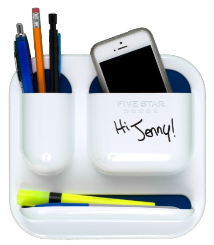 Five Star Locker Organizer, Tri-Pocket with Dry Erase Surface, 7 x 7.5 Inches, White with Cobalt Blue Pockets (72622)
