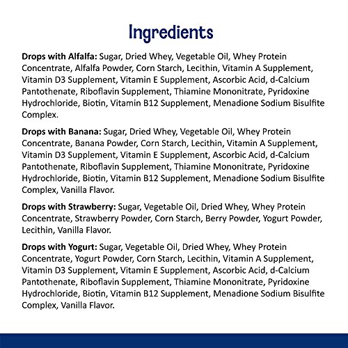 -. Feature : Classic yogurt drop treats for rabbits & guinea pigs / Four tasty flavors: Alfalfa, Banana, Strawberry, and Yogurt / Comes in a resealable tray / No artificial colors or preservatives / Made in the USA