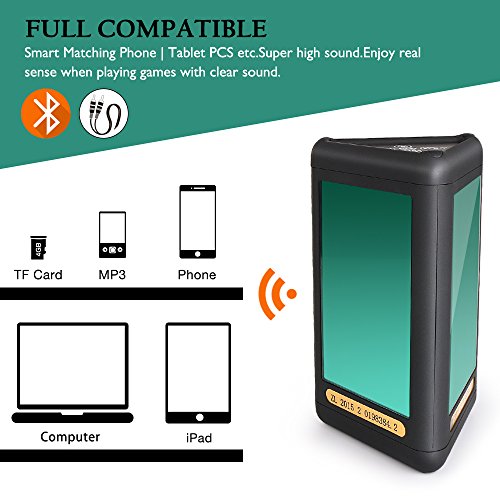 Feature : ★Cool Flash Led Light show: This wireless bluetooth speaker puts on a lightshow via the LED lights that are built into the speaker 2 side, 5 kinds of music pulsating LED visual display mode. create a cheerful atmosphere, you can set adjust the light as you like. / ★Crisp sound and compact design : Built-in high-quality dual voice coil speakers, catch all the highs and lows including deep bass and bright treble. Very stablely straight three prism structure , soft rubberized finish on this speaker make it Anti-slip and anti-wipe. / ★MicroUSB Charging and 3.5mm audio cable/AUX-IN jack ; can be charged by connecting to PC via USB cable; play audio from laptops, PCs, and non-Bluetooth devices using Micro SD card or through a 3.5 mm jack . / ★Powerful battery and loud Speaker: Built-in (3.7V/2300mAh) lithium battery, charge 150min, can play 6 hours (depends on the sounds volume), high quality loud speaker to entertain and fill any room, outdoor gathering, picnic and pool party. / ★ Easy to Setup and Pair with Device : Connect over Bluetooth in just a few seconds to pair with your device up to 33 unobstructed feet away. compatible with most Bluetooth-enabled devices.