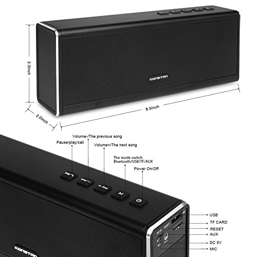 What you get: Konstar Bluetooth speaker, Micro USB charging cable,Aux in cable,user manual ,remote controller and friendly customer service, and 30-day money back guarantee