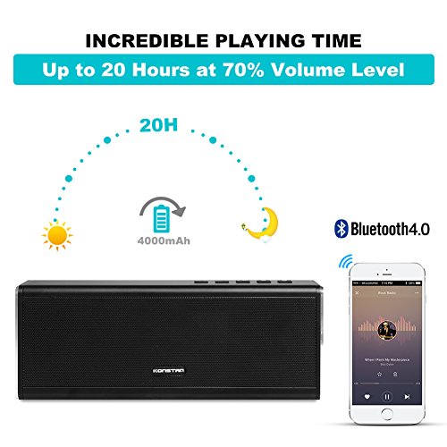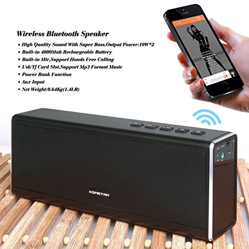 Konstar Wireless Speaker with Dual 10W Drivers and Built in 4000Mah Battery - Black