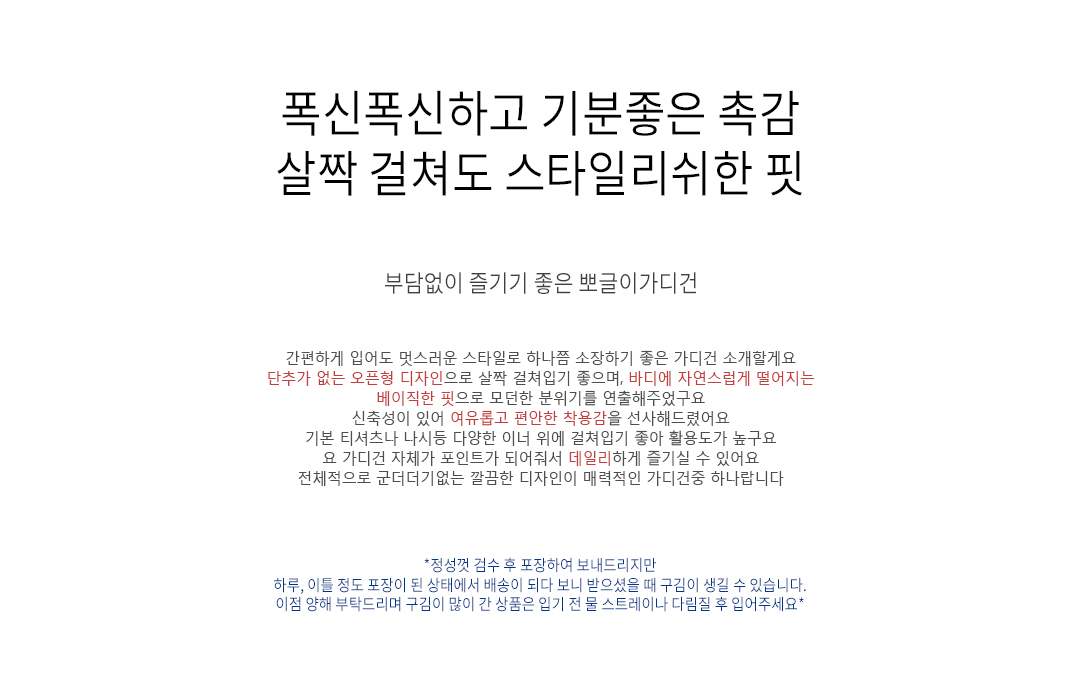 .같은 사이즈라도 체형에 따라 핏감이 조금씩 다를 수 있습니다.