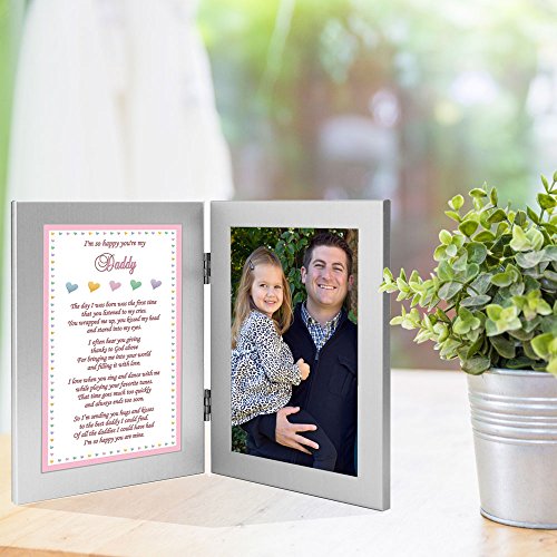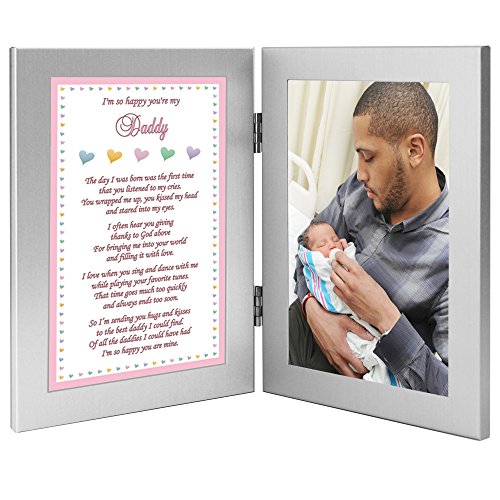 Two attached 4x6 inch frames - left frame contains poem for Daddy - right frame has area for a 4x6 inch photo of Dad and daughter or just his daughter that is inserted after delivery
