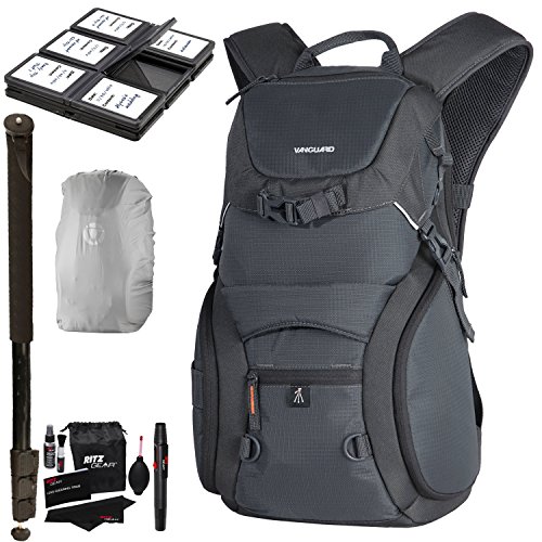 VANGUARD ADAPTOR 48 Camera Daypack, Rain Bag Cover, SD/SDHC Memory Card Hard Plastic Case, Ritz Gear Cleaning Kit, 72" Heavy Duty Monopod