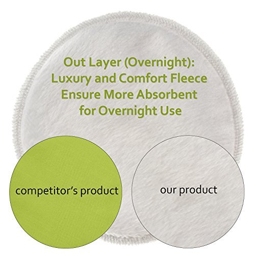 -. Feature : OVERNIGHT EXTRA ABSORBENT DESIGN: 4 pairs of Regular breast pads consist of 3 layers, and the extra pair of overnights nursing pads add extra absorbent microfiber in the middle layer to prevent overnight leak. This combination meet the need of both light leaking and heavy leaking breast feeding mom as well as daily regular use and night longer time use. / CONTOURED SHAPE NATURAL FITS: Unlike other pads that are "flat", these curve to your natural shape, so they're comfortable and don't shift around in your bra or nursing top. / ANTIBACTERIAL AND HYPOALLERGENIC: Premium Organic bamboo ecologically grown is soft, natural and gentle on sensitive skin and ensure nipples are protected and much softer and more absorbent than cotton, h.e.m.p or other cloth. Unlike disposable pads contain chemicals that can cause reactions and allergies, the reusable bamboo pads are organic and. They are anti-bacterial, do not generate static and do not hold odors. / SUPER SOFT AND ABSORBENT: The inner layer made with Premium Bamboo Velour Rayon Fabric. Softer than the bamboo terry used by most brands. And it gets softer after each wash. It soothes chafed nipples while absorbing better than other materials, such as Organic Cotton, and h.e.m.p fabrics - This mixture creates a super soft, super absorbent and luxury nursing pad , leaving your clothes dry and you feeling comfortable. / MILK RESISTANT AND LEAK PROOF: Backed with a PUL fabric, which means it can also breathe and your nipples won't get a yeast infection as easily.it also prevents unsightly leaks and stains on your clothes. SUPER ABSORBENT materials in the middle prevent leakage and maintain dryness.
