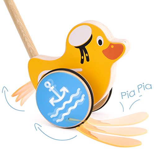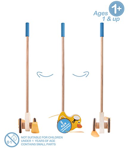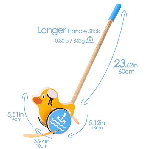 【ENCOURAGE EARLY WALKING】 With multi colours, the penguin/duck/dinosaurs push along wooden toy is very beautiful and lovely which will make your kids love them and never put the toy down. The push toy polished smooth that will not hurt little ones' hand, and long handle design(60cm/23.62inch) is better than others, this wooden push along is here to encourage your little one walking etc.