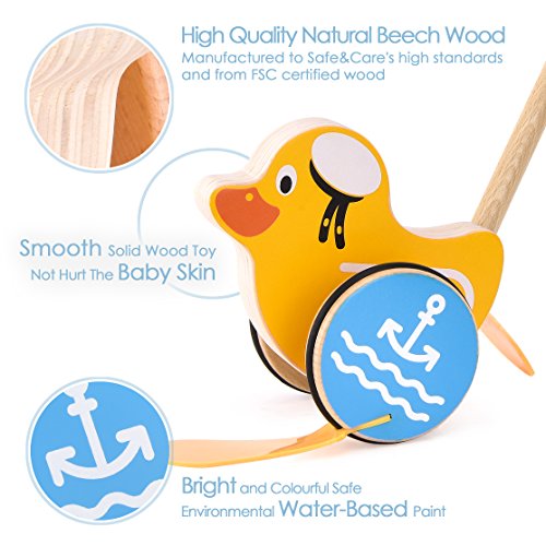 Safe&Care cute Push and Pull Toy are just the best quality and fun toy that your little kids deserves. Wrapped with beautiful package, best gift for baby's birthday. A gentle push or pull gets this toy moving and your toddler's feet walking. Helps develop balance and early walking. Suitable for children from 12 months. Enhance child developmental skills- boosts balance, coordination, finger flexibility, physical strength, hearing, vision, and color identification ability. Features -Environmentally safe materials.