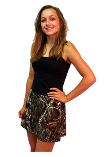 -. Feature : Camouflage short skirt perfect for school, dances, or as a swim suit cover up / Lifghtly flared for fun and a comfortable fit. / Elastic waist can be accented with a scarf or belt / Poly spandex material has a slight stretch and sheen / Made in the USA, distributed by CamoDiva.com