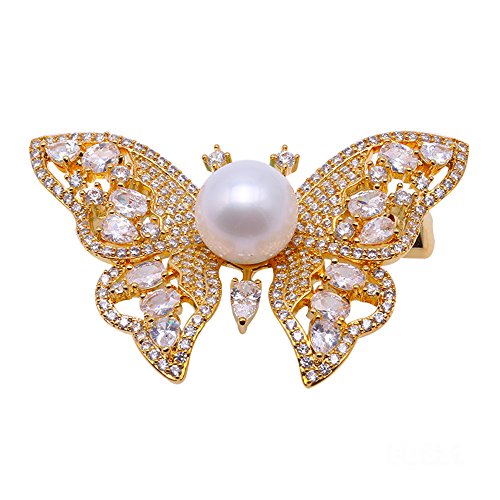 -. Title : JYX Fine Butterfly-style White Freshwater Pearl Brooches Pins Golden-tone