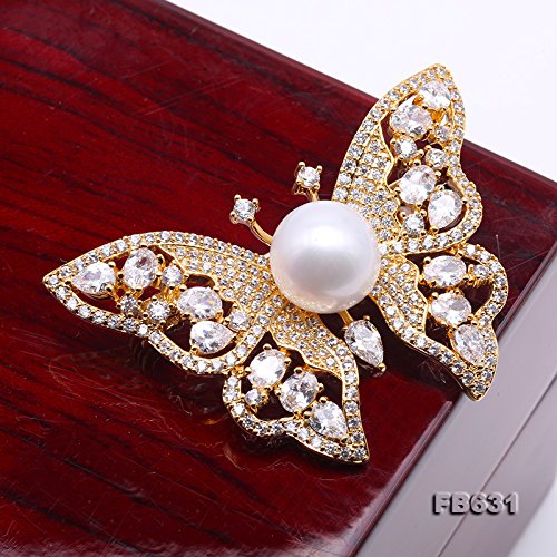 -. Feature : Lovely white pearl brooch with butterfly design. / The mainstone is a 10.5mm white freshwater pearl, very smooth and lustrous. / Brooches are often worn on a jacket or blouse with the purpose of dressing up an outfit. By using brooches on a little black dress, the outfit becomes dressy and stylish, even if it is placed at the "V" of the neckline or at the waist. It is also very popular to wear a brooch at the top of a buttoned blouse. / Brooches are added to hair, hats, purses, gloves and scarves to make these accessories more fashionable. / Pearl Customization ia available. Any question or request on our pearls quality, size, setting, metal type, please feel free to contact us, we are always here to help you.