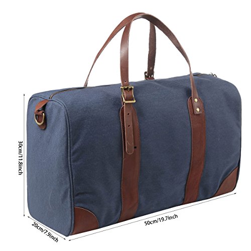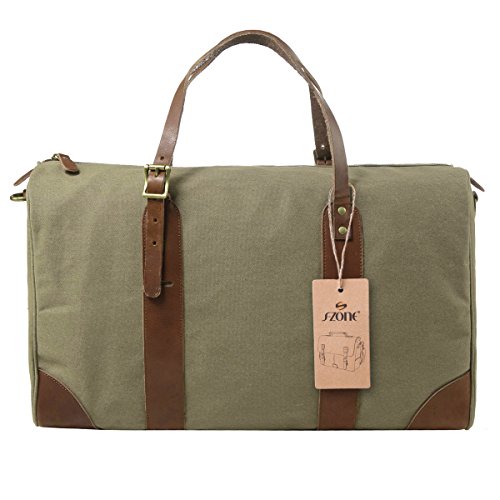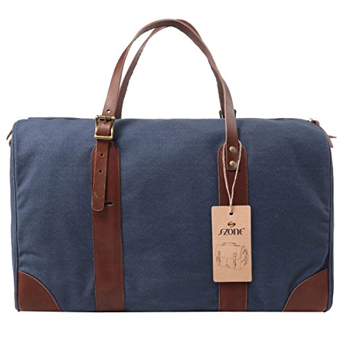 -. Brand : S-ZONE -. ClothingSize : medium -. Department : mens -. Feature : This duffel bag is made of soft canvas and top quality genuine leather trim / Dimensions of the travel bag is about 50*20*30cm/19.7*7.9*11.8inch(L*W*H); Height of handle is about 20-27cm/7.9-10.6inch / Come with removable adjustable shoulder strap, width of the strap is 5cm/2inch, length of the strap is about 73-137cm/28.7-53.9inch / This duffel bag is weight lighter but durable; Used in the daily travel / The weekender bag is fashion casual life style and general use for Female & Male -. ProductGroup : Apparel -. ProductTypeName : LAGE -. Size : medium -. Title : S-ZONE Canvas Leather Trim Travel Tote Duffel Shoulder Handbag Weekender Bag
