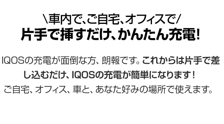 アイコス IQOSをUSBポートから充電できるホルダー商品仕様商品名:Cigallia USB iQosチャージャー 型番:3R-CIQ05電圧:5V電流:2Aサイズ:約91×25×27mm重量:約26g保証期間:通常使用で3ヶ月保証デジキン