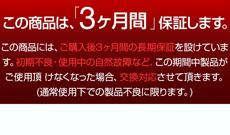 | 保証期間 | 通常使用で3ヶ月保証 |