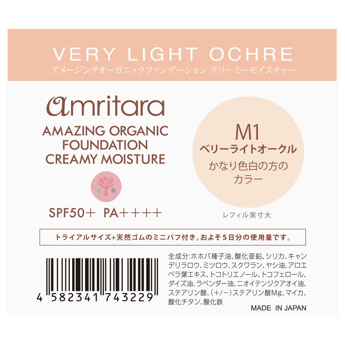 Amuritara Amazing Organic foundation creamy Moisture trial M1 Berry Light Ochre SPF50 + PA ++++