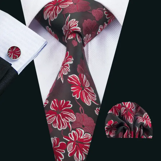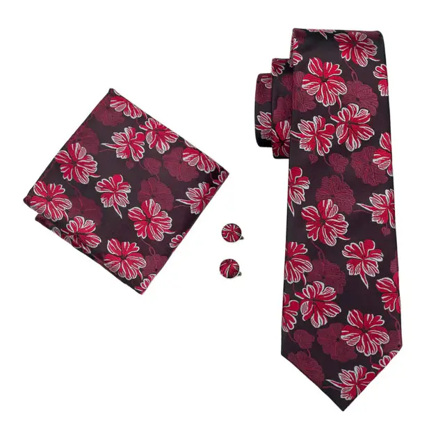 | [해외]LS-1468 배리. 좋아서 클래식 남성 넥타이 100% 레드 꽃 실크 넥타이 손수건 커프스 세트 남성 웨딩 파티 비즈니스 |