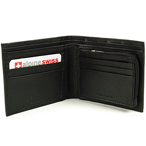 Mens Leather Wallet Zipper Coin Purse 6 Card Slots 3 More Pockets 2 Bill Section Black