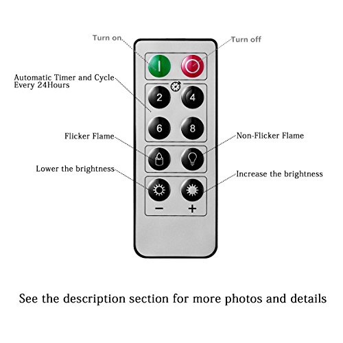 Smart Control - 10 key remote timer-for easy & convenient operation.the flameless candles lets you choose among 2/4/6/8 hours timers as well as static flickering light options and brightness levels.the timer will cycle every 24 hours