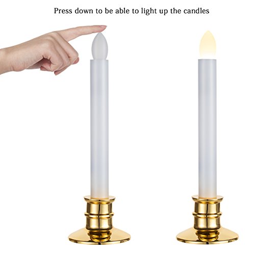 Flameless Taper Window Candles Flickering LED Candles with Gold Removable Candle Holders | 10-key Remote Control 2/4/6/8 Hours Timer | Warm White - Pack of 2