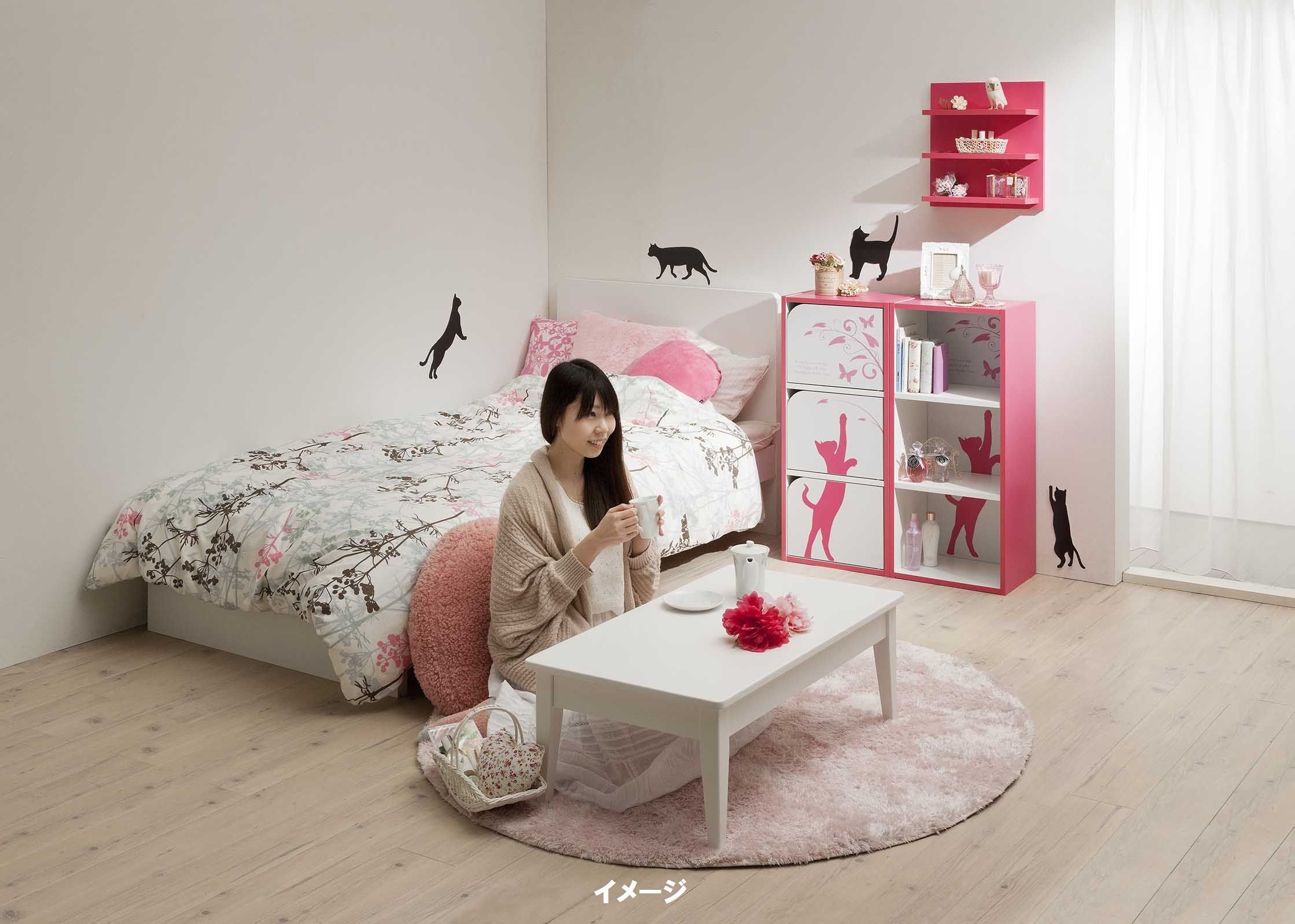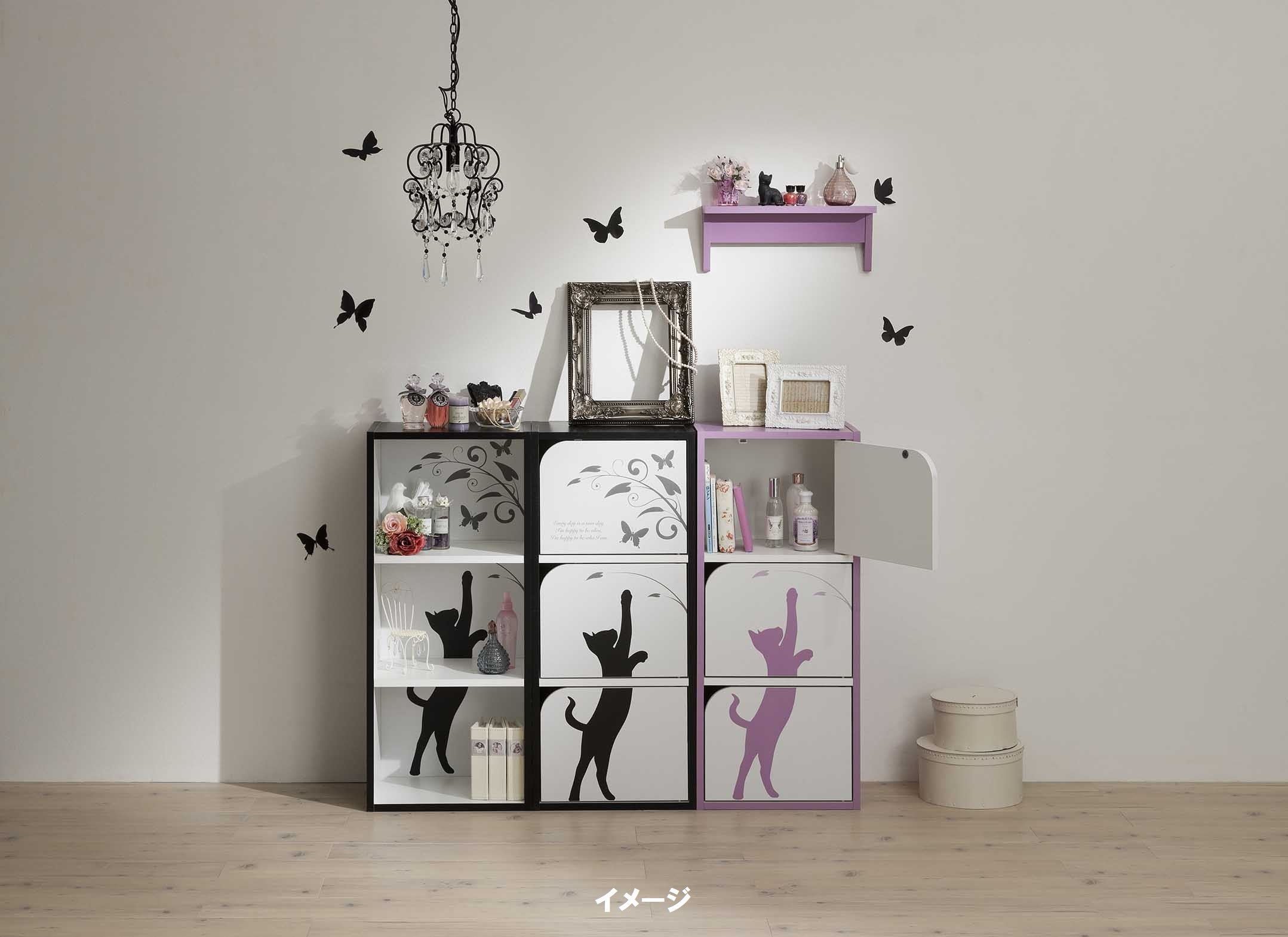 The silhouette of a cat like a wall sticker is innovative and distinctive open rack.