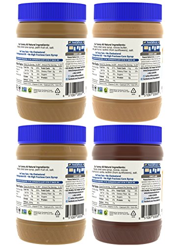 Our bestselling flavors in one pack. Dark Chocolate Dreams, White Chocolate Wonderful, Smooth Operator, and Crunch Time make up the dream team of our peanut butter varieties. More than just a sandwich spread, Peanut Butter & Co. peanut butter is fantastic on fruit, spooned over ice cream, added to cakes and cookies, blended into smoothies, or simply eaten out of the jar. Peanut Butter & Co. peanut butter contains no cholesterol, no trans fats, no hydrogenated oils, and no high-fructose corn syrup. These flavors are gluten-free, vegan, Non-GMO verified, and certified kosher pareve. The shelf life is 6 months after opening, if stored in a cool, dry place.Feature