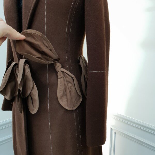 허리라인을 리본매듭으로포인트를준유니크한 스타일의 모혼방코트입니다~~♡♡총장110cm