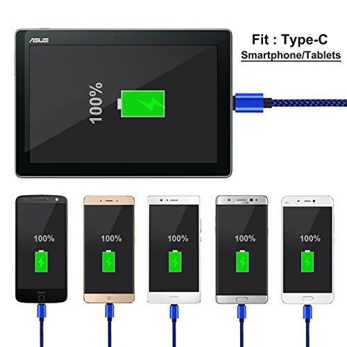 USB C Cable, UNISAME (3pcs Pack) 6Ft Braided USB Type-C 3.1 to USB 2.0 Data Charging Cable Reversible Connector Cord for Galaxy S8 C9 Pro, Moto Z, LG G5 V20, Nexus 5X 6P, Oneplus 3 and more