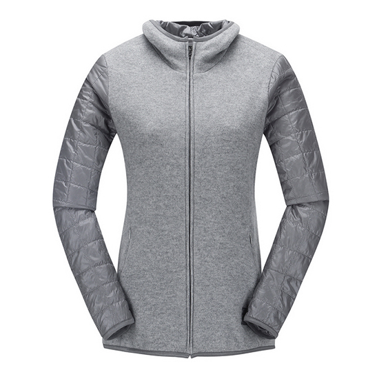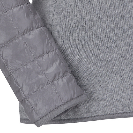 - 소매의 이소재 퀼팅 디테일 포인트를 준 여성 가디건.