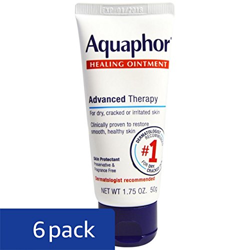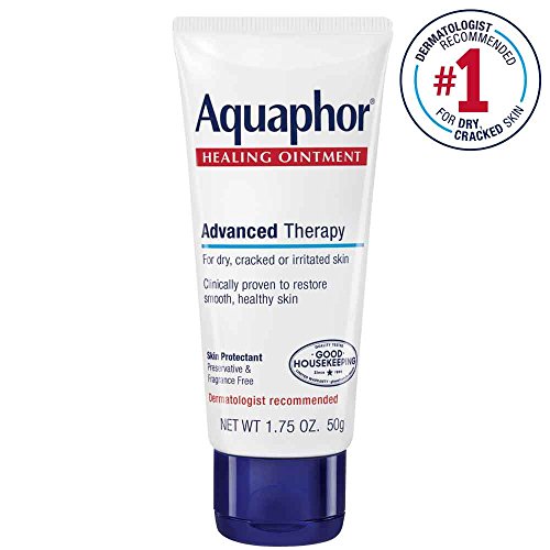 Aquaphor Healing Ointment is a multi-purpose ointment that effectively relieves dry, cracked, chafed, chapped or irritated skin and protects to help heal minor cuts, scrapes, burns and wind burn. It works great on cuticles too. Dermatologist and pediatrician recommended, it is clinically proven to help enhance healing and restore smooth, healthy-looking skin. Aquaphor Healing Ointment Advanced Therapy is fragrance-free, preservative-free, and dye-free, so it is appropriate for sensitive skin. The unique formula with glycerin, bisabolol (chamomile essence), and provitamin B5 moisturizes, soothes, and protects to enhance healing. Use it to protect skin from dry, cold weather and frequent hand washing, or to protect chapped, cracked skin, minor cuts, scrapes, and burns.Feature