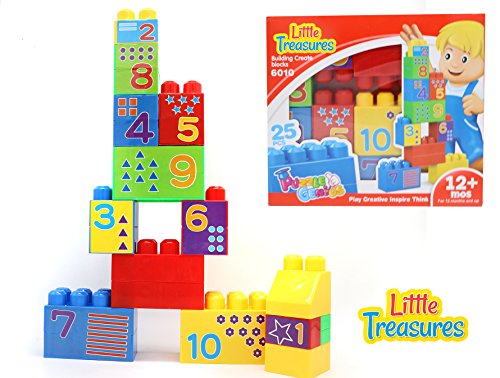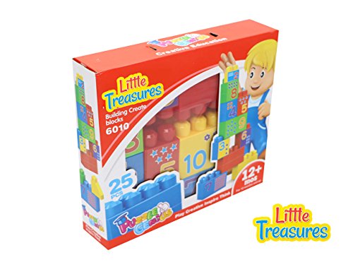 -. Binding : Toy -. Brand : Little Treasures -. EAN : 0190447008117 -. Edition : Interlocking Blocks -. Feature : This cool and creative game set contains 25 building blocks of different sizes and shapes with numbers P.R.Inted on them. / Kids can design their own toys and forts with these building blocks that will help them learn to construct things with their hands. / Beginner Toy Blocks - From Baby to Toddler and Kids - These types of toys are fantastic ways to encourage infants to develop their creative side and design and build things of their own. / Intended for boys & girls of 12 months and older who are just getting used to playing with their hands and walking around. / The Toy play set is packed in a detailed, colorful box with instructions included! 100% satisfaction is our goal! -. Genre : compatible toy -. IsAdultProduct : 0 -. ItemPartNumber : 10571 -. Label : Little Treasures -. Manufacturer : Little Treasures -. MPN : 6010 -. PackageQuantity : 1 -. PartNumber : 6010 -. ProductGroup : Toy -. ProductTypeName : TOYS_AND_GAMES -. Publisher : Little Treasures -. Studio : Little Treasures -. Title : Little Treasures Big Baby Building Blocks play set Includes 25 Pcs Collection Set That Is Compatible with Mega Blocks Build & Create parts -. UPC : 190447008117