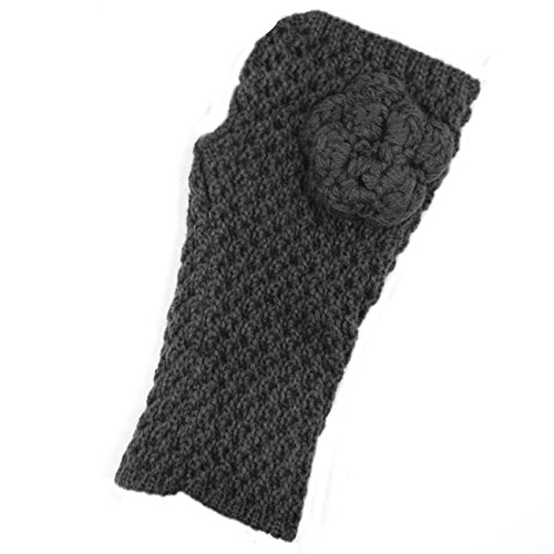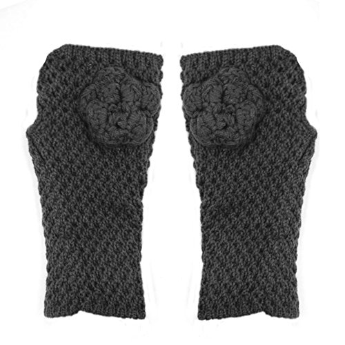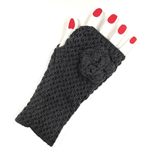 Wrapables Soft Knit Fingerless Gloves with Flower, Dark Grey