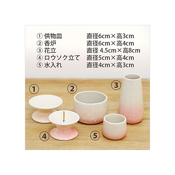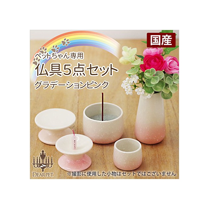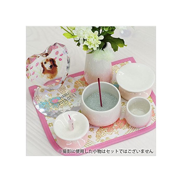 애완동물 불단납골항아리의 디《아펫토》 애완동물 불교 용품 세트 5점 그라데이션 핑크 국산 도기 수 만들어 넣음(담는 그릇·상자 등) 화 입공물대 향로 양초 서다