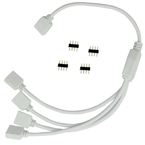 Mingdak 1 to 4 Ports LED Strip Light Splitter Female Connection Cable for RGB Color Changing Light Strips (Smd5050/3528) with 5pcs of 4pin Male Connectors - Pack of 1