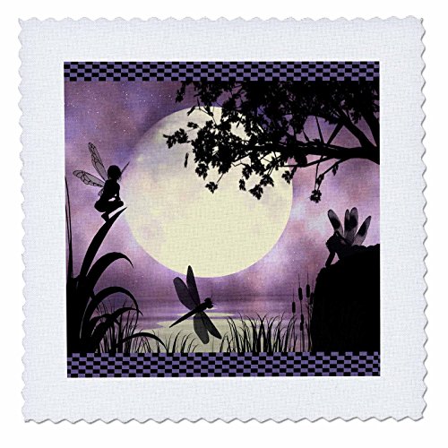 3dRose qs_35668_4 Fairies & Dragonflies with An Purple Moon Quilt Square, 12 by 12"