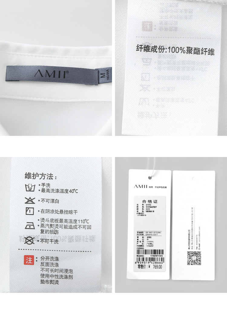 | 洗涤标准: | 40℃以下手洗110℃以下垫布熨烫不可漂白不可浸泡悬挂晾干不可干洗 |