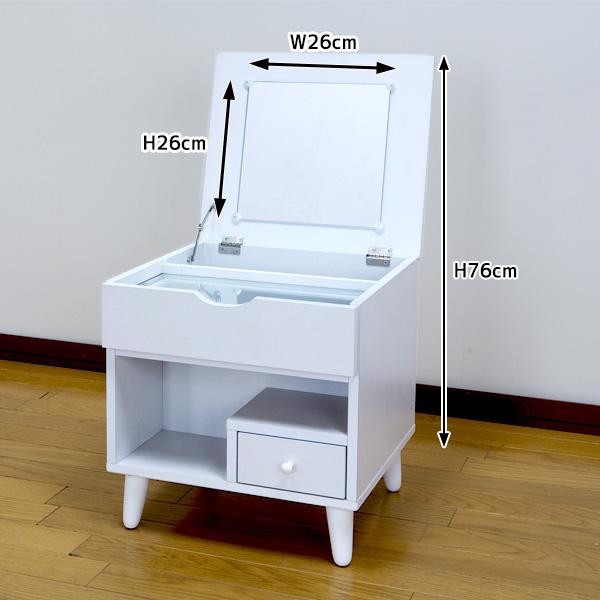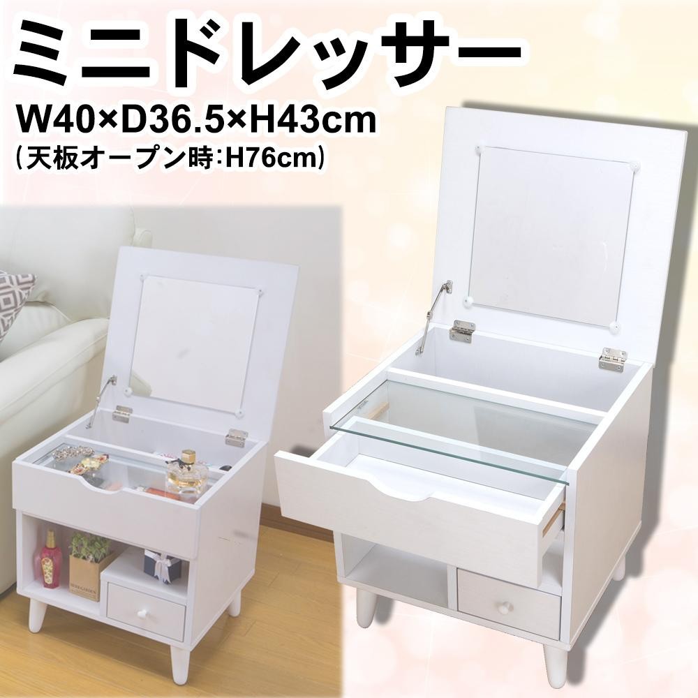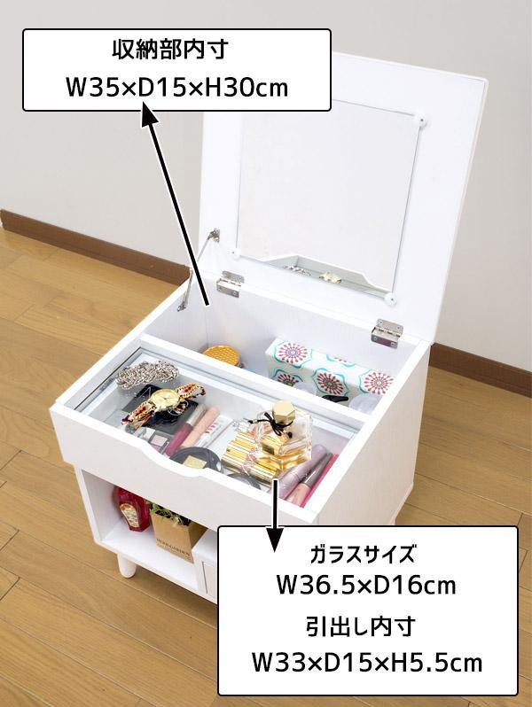 | 天板を開けるとドレッサーに!!コンパクトなのに収納力たっぷり☆ガラスのちょい置きスペースも便利です♪脚部を取り付けるだけの簡単組み立て☆ |