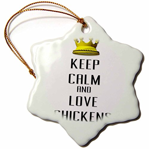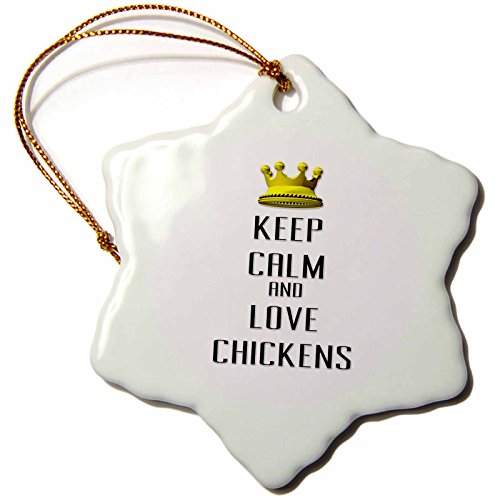 3dRose orn_120988_1 Gold Crown Keep Calm and Love Chickens Snowflake Ornament, Porcelain, 3-Inch